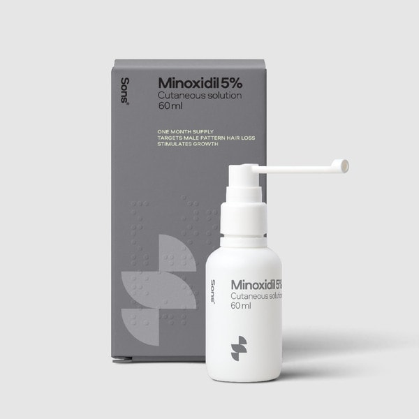 La solution de minoxidil 5 % est un médicament cliniquement prouvé qui traite efficacement la calvitie masculine. Elle augmente le flux sanguin et l'oxygénation des vaisseaux, ce qui réactive les follicules pileux atrophiés.