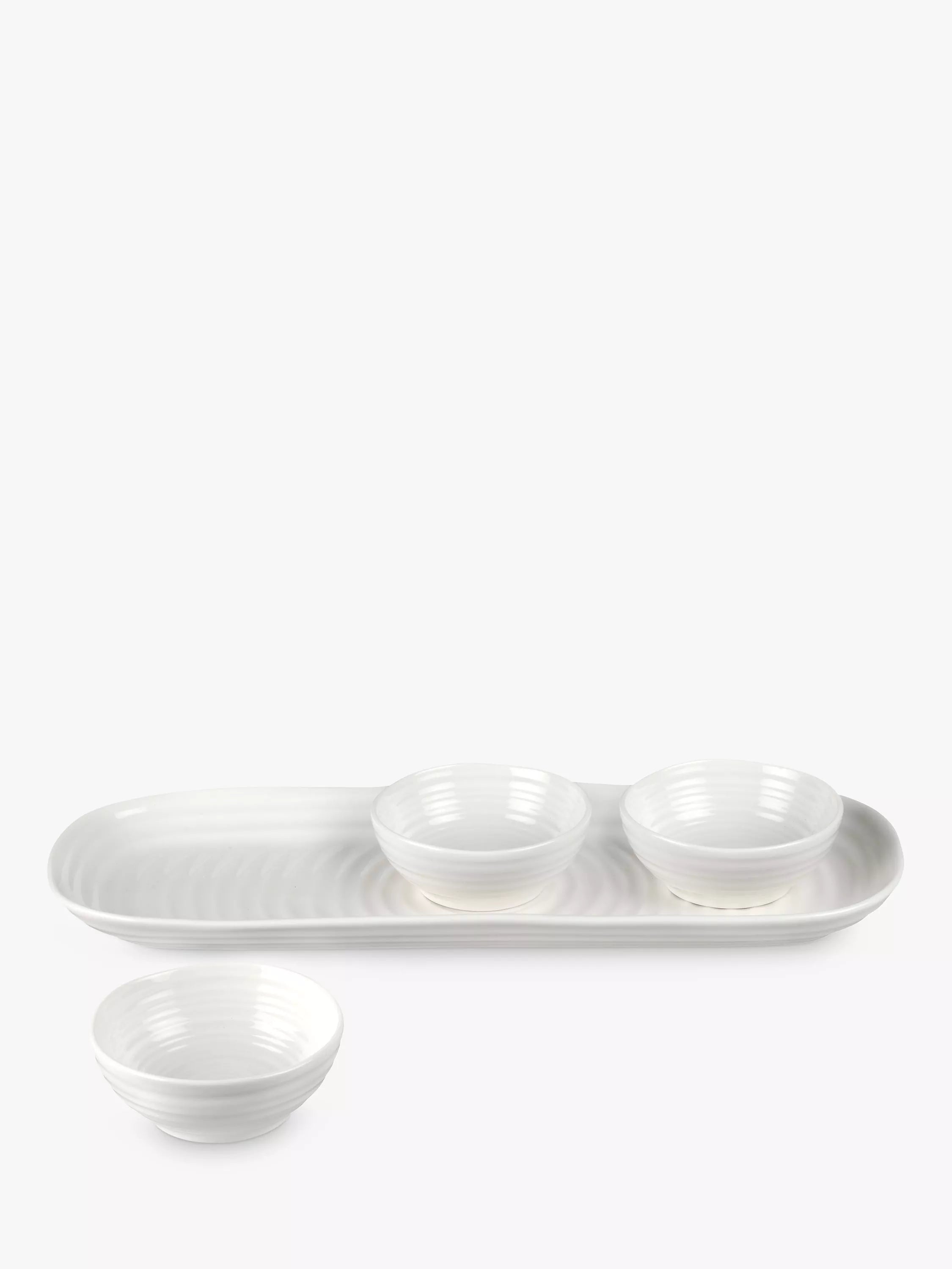 Servez une sélection de sauces pour agrémenter vos repas ou vos collations. Ce service comprend trois bols à sauce sur un plateau, de quoi satisfaire tout le monde.