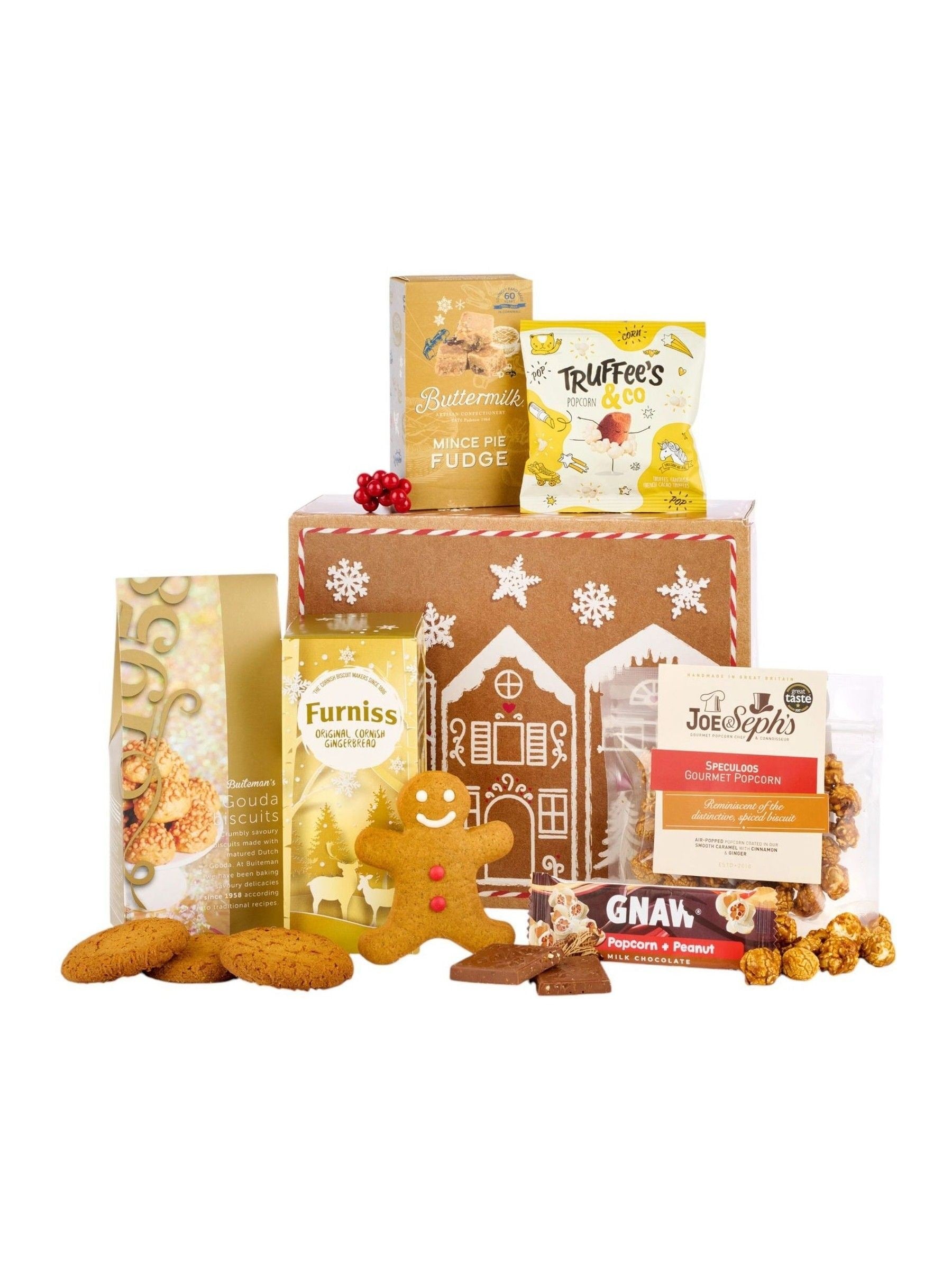 Truffees & Co Popcorn Truffles 35g Joe & Seph's Speculoos Popcorn 32g. Buiteman Gouda Biscuits 75g. Original Biscuit Bakers. Gingerbread Jack Biscuits Gnaw Peanut & Popcorn Milk Chocolate. Impulse Bar 35g. Furniss Gingerbread 160g. Buttermilk Mince Pie Fudge 100g. Packed in a Gingerbread House Gift Box. Read More