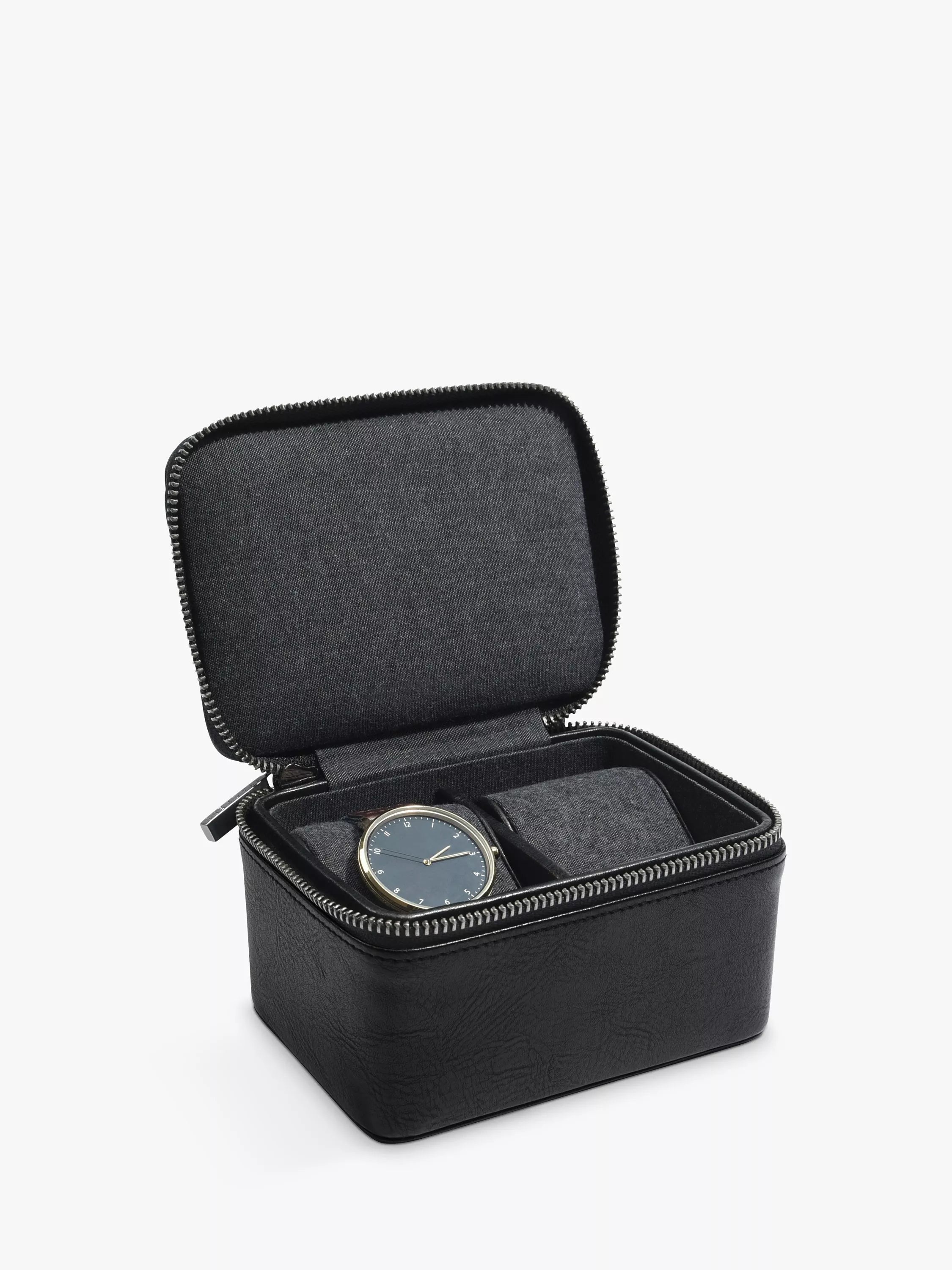 - Intérieur entièrement doublé avec deux coussinets de montre amovibles.
