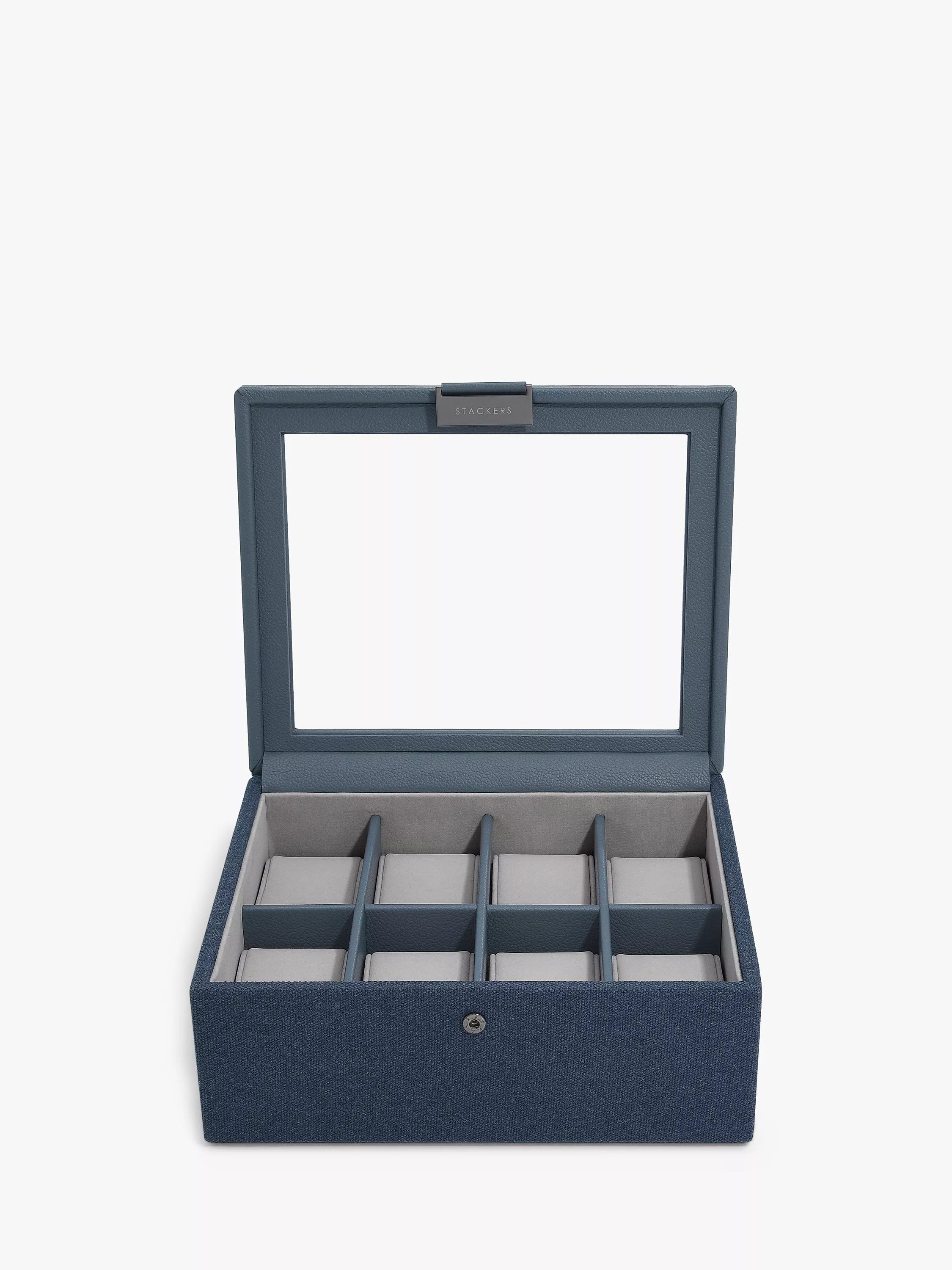 Pour les collectionneurs de montres passionnés. Rangez et protégez votre collection grâce à l'un de nos coffrets à montres. Doté d'un couvercle en verre transparent pour une visibilité optimale et une protection accrue de vos montres, et de coussinets doux pour les préserver des rayures et de la poussière, ce coffret arbore un extérieur en toile et similicuir pour un style contemporain et élégant.