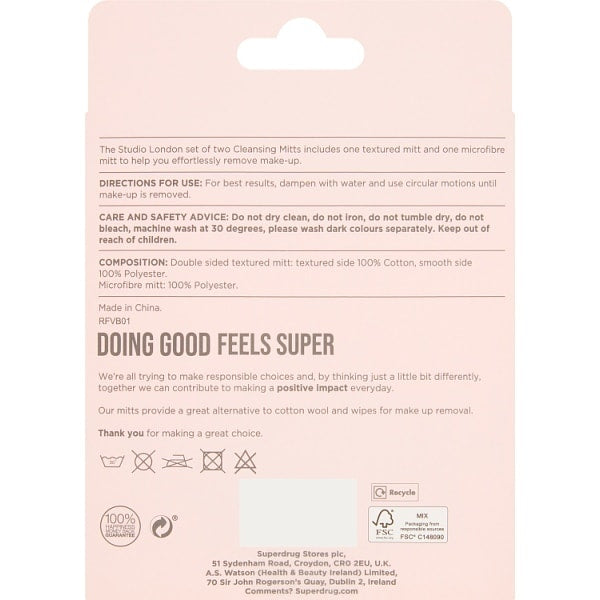 This Studio London set includes two specialised cleansing mitts designed to streamline your daily routine effectively. Use the included textured mitt and microfibre mitt to effortlessly remove all traces of makeup each time you cleanse your face. These tools provide a great, reusable alternative to traditional cotton wool and disposable wipes.