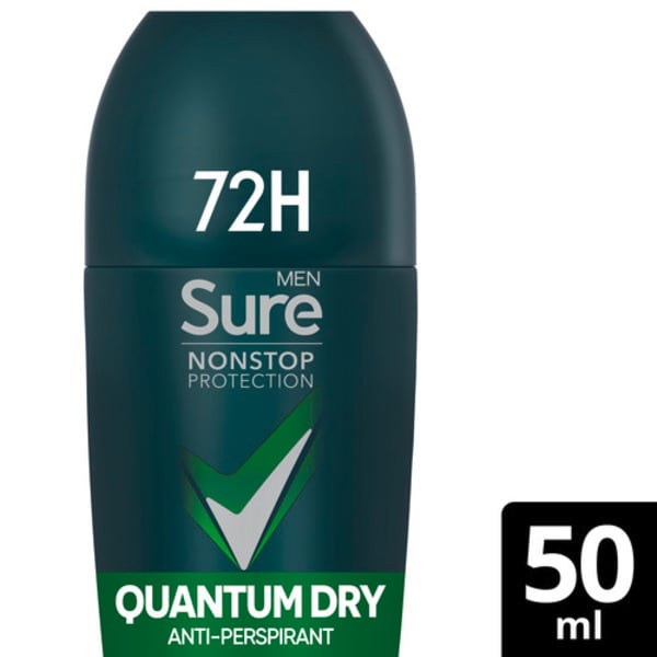 Product Informationsure men antiperspirant deodorant roll on nonstop quantum dry 50ml provides 72 hour protection against sweat and odour this antiperspirant deodorant roll on provides 2x more powerful protection featuring unbeatable antisweat microtechnology and our unique motionsense technologyFeaturesnext level moves demand next level sweat protection thats why sure men antiperspirant... Read More