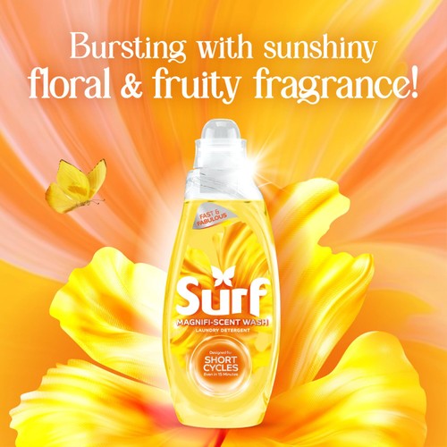 This Surf Magnifi-Scent Laundry Liquid offers a strong fragrance solution for your laundry needs, even when using shorter machine cycles. It ensures clothes are powerfully scented and residue-free, making your laundry routine more efficient for modern washing routines.