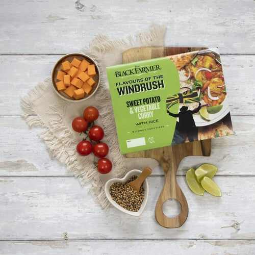 Read MoreIntroducing The Black Farmer Sweet Potato, Veg & Rice ready meal, part of the Flavours of the Windrush collection, a delicious and wholesome option that brings together vibrant flavours and nourishing ingredients. Our ready meal is thoughtfully crafted with a perfect blend of sweet potatoes, fresh vegetables, and fragrant rice, creating a harmonious medley of taste and texture. Packed with natural goodness and free from artificial additives, this convenient meal is not only satisfying but also aligns with our commitment to quality and sustainability. Whether you’re looking for a quick lunch or a hassle-free dinner, The Black Farmer Sweet Potato, Veg & Rice ready meal is the perfect choice for a flavourful and nutritious experience inspired by the heritage of the Windrush generation.