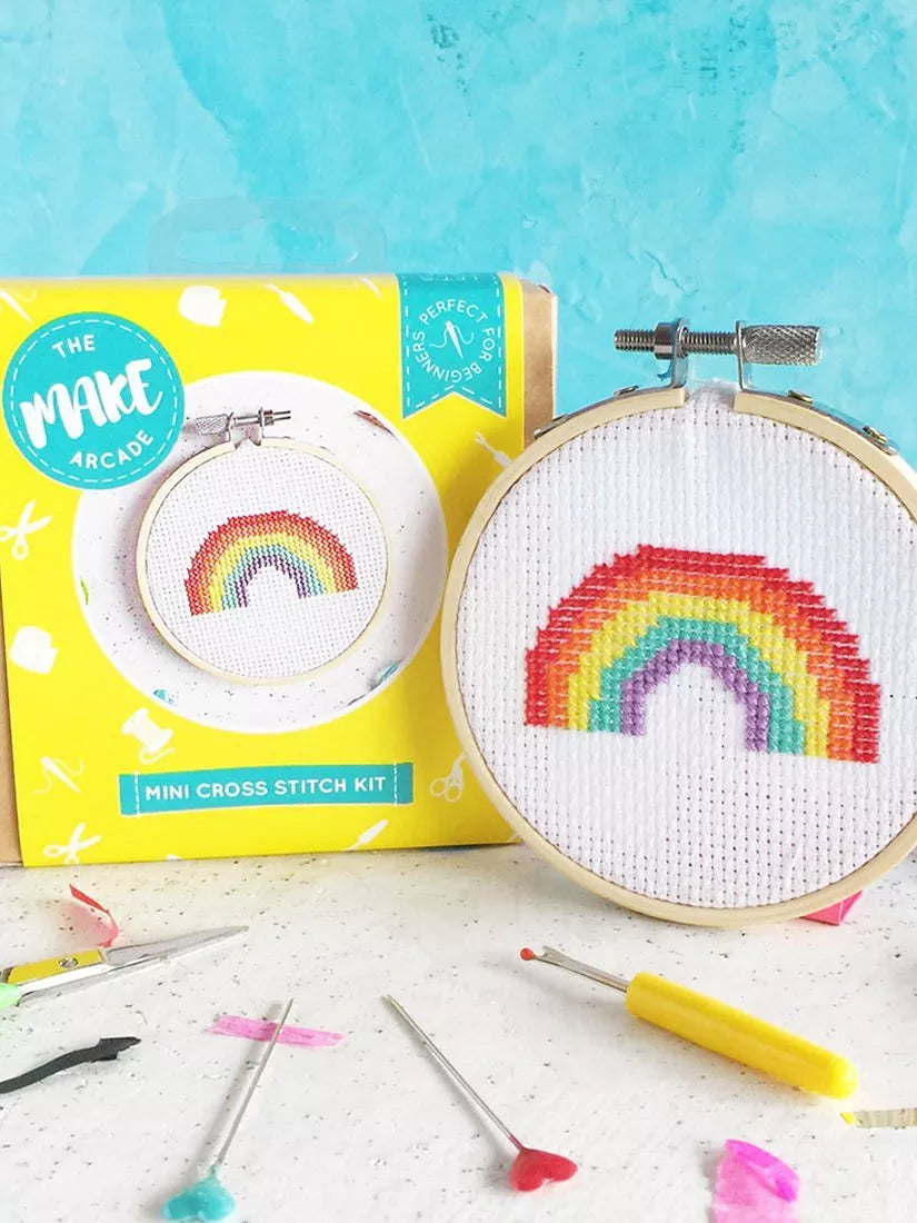 Égayez votre journée avec ce kit de point de croix arc-en-ciel amusant de The Make Arcade.