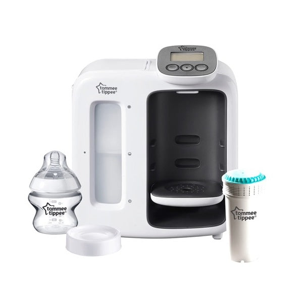 Informations produit : La machine à biberons Tommee Tippee Perfect Prep Jour/Nuit prépare des biberons frais à température corporelle en seulement deux minutes, 10 fois plus vite qu'une bouilloire.