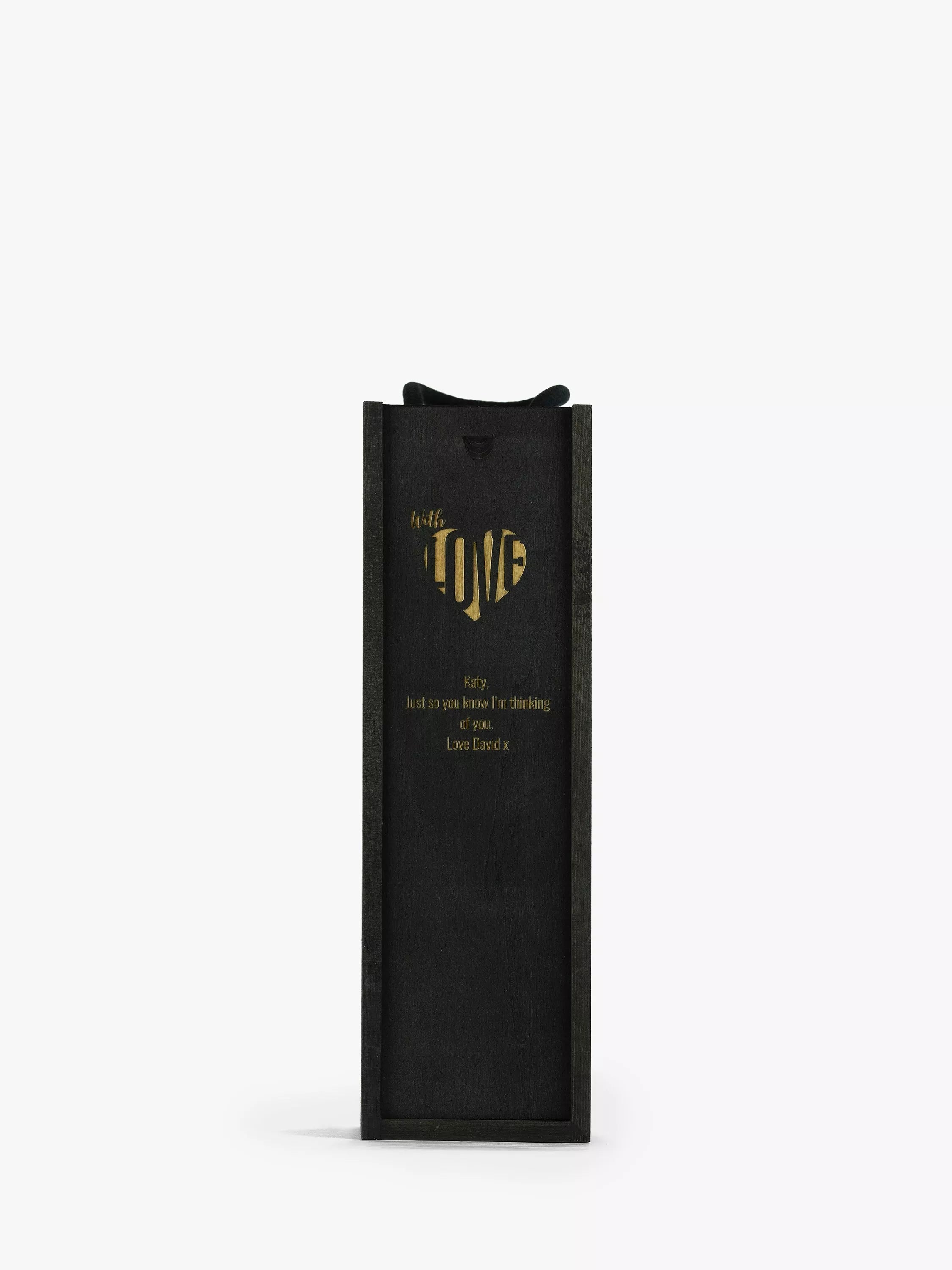Ce coffret à vin en bois pour une bouteille est fabriqué à partir de pin issu de forêts gérées durablement. Choisissez parmi une sélection de modèles et personnalisez-le en y faisant graver votre message au laser sur le couvercle.