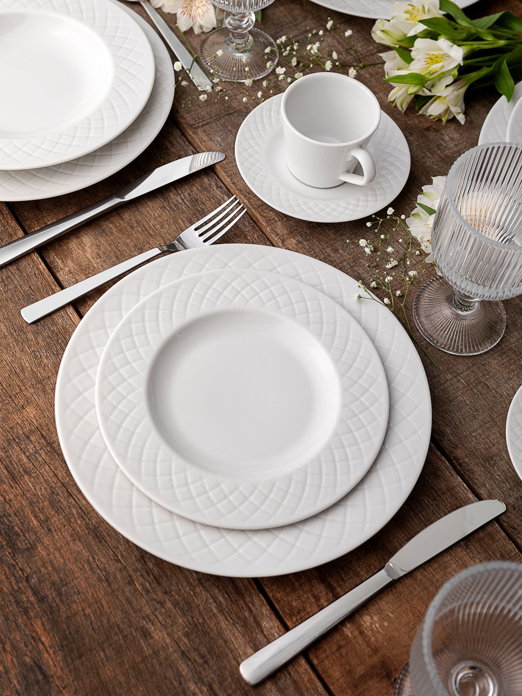 Delight your guests with the Tramontina Ingrid Dining Set. Comprising 12 pieces of high-quality porcelain, this set is a true celebration of cinema and elegance. Each plate is a tribute to the unforgettable stars who captivated the world with their talent and charm. From dessert to the main course, each piece of the Tramontina Ingrid collection brings all the glamour of Hollywood to your table. Surprise your guests and turn your meals into memorable events with the Ingrid dining Set. Composition: 4x dinner plates, 4x side plates, 4x Bowls.