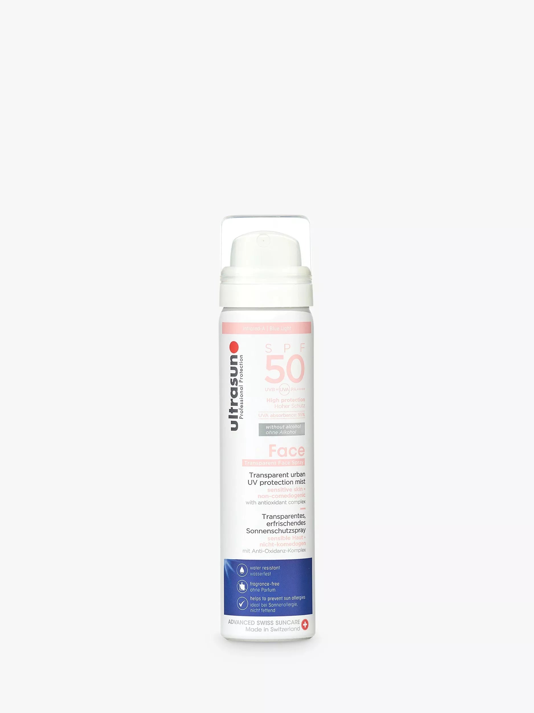 La brume visage et cuir chevelu Ultrasun 50 SPF UV offre une protection à large spectre UVA et UVB dans un spray transparent ultra-léger, facile à appliquer, non gras et à séchage rapide.