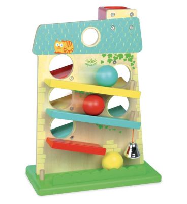 This Vilac House of Balls provides engaging, multi-level fun with its brightly coloured construction. Children guide three included balls down the track, observing motion and cause-and-effect. The robust wooden toy design ensures lasting quality for interactive play sessions.