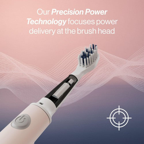 This Waken Rechargeable Sonic Toothbrush delivers focused cleaning power in the Dusty Rose finish. Its design incorporates patent-protected 'Precision-Power' technology, positioning the motor near the brush head for effective results. Enjoy up to 60 brushes per single charge, based on standard usage.