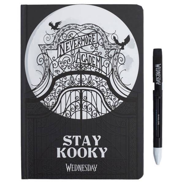 This officially licensed Wednesday Stay Kooky set contains essential items for fans of the series. It includes one notebook featuring lined pages alongside a coordinating pen.