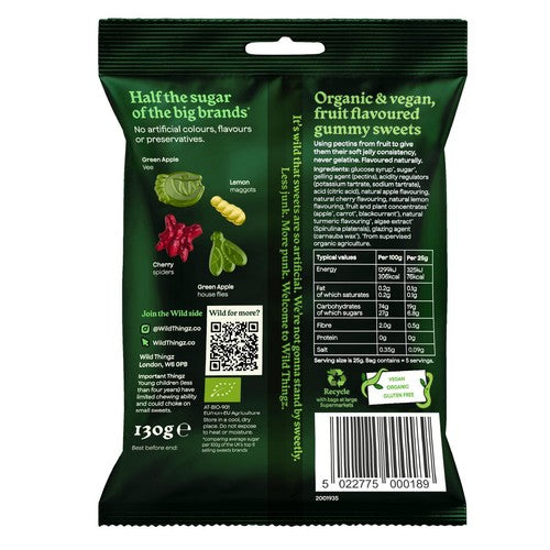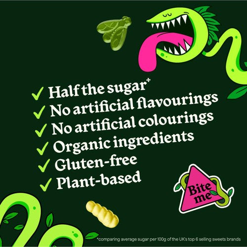 Wild Thingz Zesty Pests are certified organic, plant-based gummy sweets with unique, creepy-crawly shapes. They offer significantly lower sugar content, containing only half the sugar of many big brand alternatives. Enjoy this chewy treat knowing it contains no artificial colours, flavours, or preservatives.
