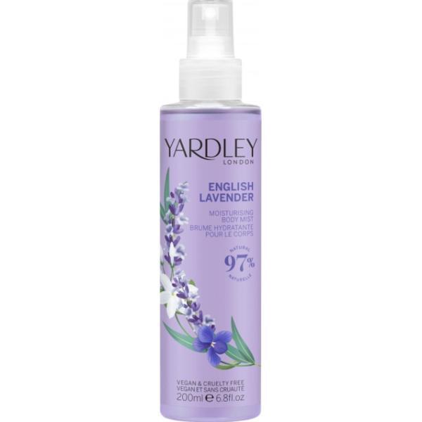 Brume corporelle à la lavande anglaise Yardley London, parfum corporel à la lavande pour femme avec des notes de bergamote et de sauge, brume hydratante pour le corps enrichie en vitamine E 200 ml