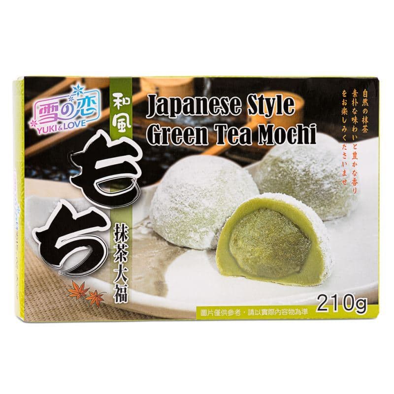 La marque Yuki & Love signifie « bonheur et amour », et affirme qu'elle souhaite apporter plus de lumière à chaque instant. C'est une marque taïwanaise très populaire, appréciée pour sa gamme de desserts et d'en-cas. Les mochis sont un dessert japonais traditionnel à base de riz gluant japonica à grains courts, et généralement d'autres ingrédients comme de l'eau, du sucre et de la fécule de maïs. Le riz cuit à la vapeur est pilé en pâte puis moulé selon la forme désirée. Ils ont une texture légère et élastique et sont souvent fourrés d'une pâte sucrée ou de confiture. Les mochis au thé vert de style japonais de Yuki & Love sont fourrés d'une pâte douce-amère aromatisée au thé vert. Ils sont légers, moelleux, fondants et offrent un délicieux goût de thé vert.